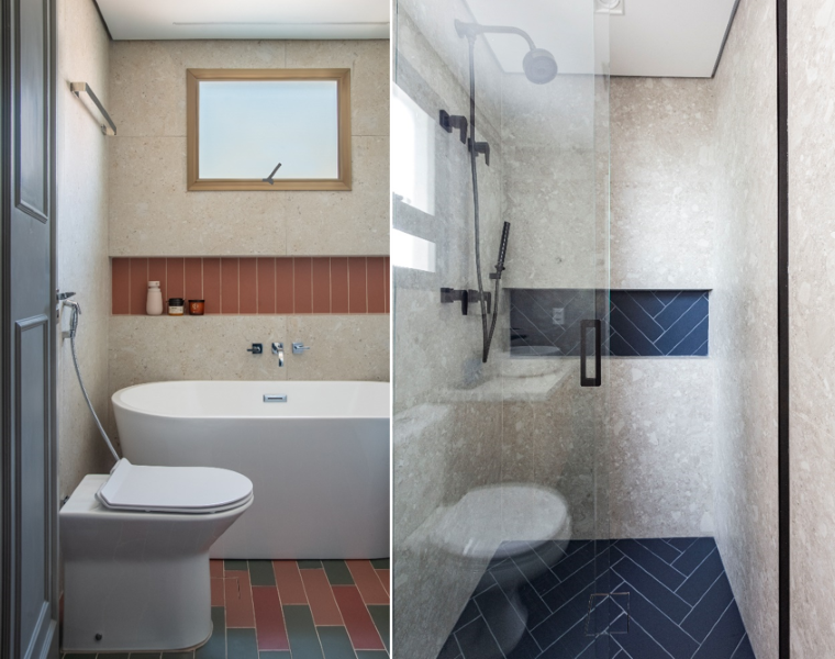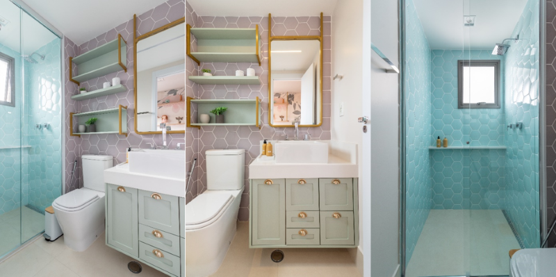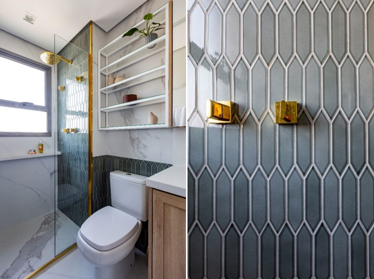 Os revestimentos também são ótimos quando o assunto é conceber combinações ousadas – estratégia que a arquiteta adora implementar nos projetos de banheiros.