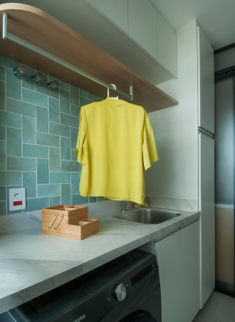 Sempre pautado pela imparcialidade, o projeto da área de serviço também oferece potencial para explorar a cor nos revestimentos de paredes.