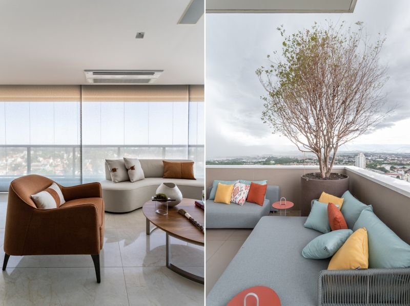 Uma das referências que guiam o conforto são os móveis que integram o layout dos ambientes. Por isso, sofás, poltronas, bancos, pufes, chaises, cadeiras e camas fazem toda diferença na percepção do conforto. “Tanto para os moradores, como também para os convidados, todos esses itens congregam com esse objetivo”, entrega a profissional. Ainda de acordo com ela, a essência convidativa é coordenada com outros atributos como material, estilo, posicionamento no layout e funcionalidade.