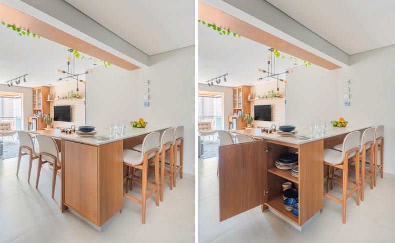 “Não é só uma modinha. Em sinergia com a versatilidade, ambas estimulam a socialização entre as pessoas, pois tornam a cozinha um ambiente menos isolado e mais convidativo”, relaciona o profissional.