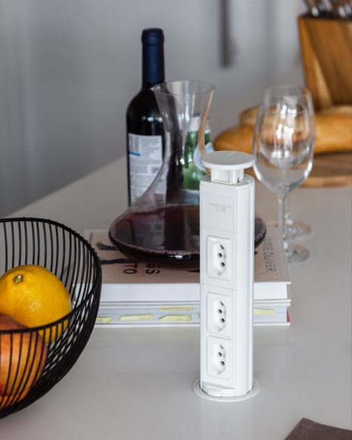 Retráteis ou dispostas em perfis de alumínio discretos, elas são fundamentais para ligar os eletrodomésticos portáteis sem comprometer a estética da bancada. Além disso, são recursos que ampliam a segurança, evitando fios espalhados pelo ambiente.