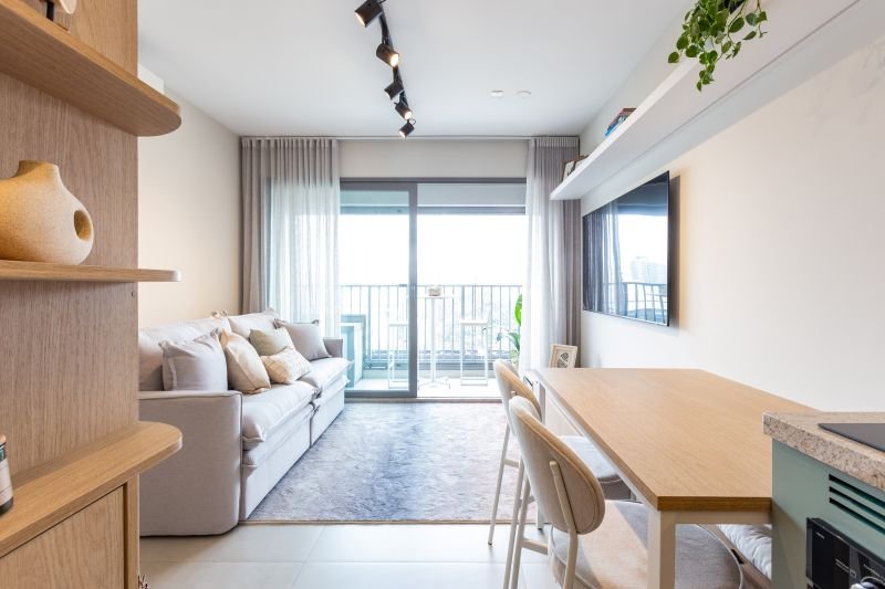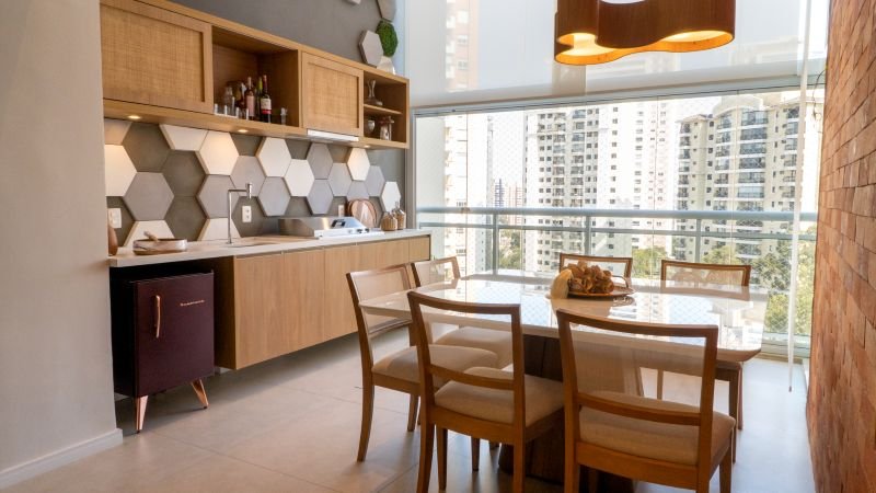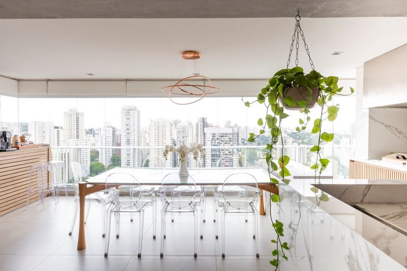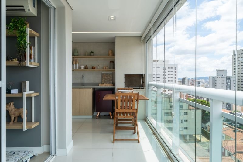 As arquitetas Marianna Teixeira e Carolina Castilho, da Freijó Arquitetura, explicam que o desejo dos moradores de integrar ambientes continua sendo o grande motivo para optar pelo envidraçamento. “Principalmente, quando o apartamento é pequeno e a varanda se torna essencial para ampliar a área social, integramos esse espaço à sala de estar — o que exige o fechamento com vidro”, afirmam.