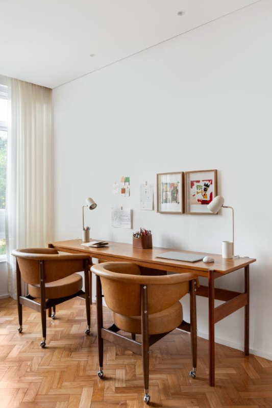 “O design da escrivaninha impacta diretamente no modo como a pessoa se relaciona com a rotina. Um desenho bem resolvido, que alia proporções corretas, materiais agradáveis ao toque e soluções inteligentes, pode tornar o trabalho mais fluido, acolhedor e inspirador”, explica Zorzeto.