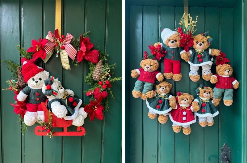 Para receber as visitas de forma alegre, a Companhia do Laço sugere guirlandas decorativas (50 cm de diâmetro) com temática de ursinhos natalinos de pelúcia. Mais informações: instagram @companhiadolaco_