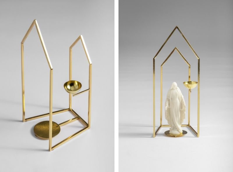 A Sui Objetos traz uma opção de oratório, no formato de casinha, com visual delicado. A peça é feita em resina, cerâmica e latão. É um exemplo de item que pode ser utilizado na época do Natal, assim como o ano todo, basta escolher o cantinho preferido da casa para colocá-lo. Mais informações: instagram @suiobjetos