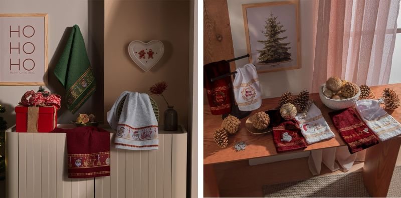 A marca Appel apresenta toalhas (de rosto e de lavabo) em Jacquard, com temas natalinos, para ganhar a atenção das visitas. São produzidas em algodão com fio 24 retorcido, barra aveludada e acabamento em fios dourados. Há também opções de panos de copa com a mesma temática, para preparar as receitas, já no clima do Natal. Mais informações: www.appelhometextil.com.br