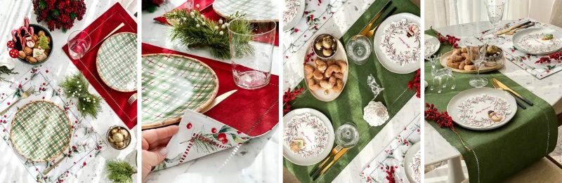 A marca Rebeca Duarte Home reuniu uma série de itens para a mesa posta das coleções Cenas de Natal e Cereja Fresh. Jogos americanos, guardanapos, cachepots, pratos, sousplats e capas de almofadas integram as linhas com bom gosto e clima de celebração. Mais informações: www.rebecaduartehome.com.br