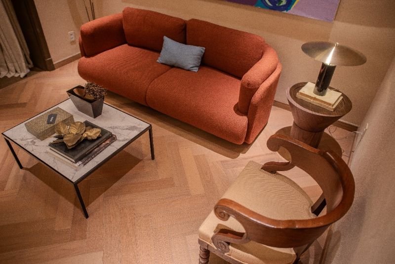 Já nos acabamentos, a preferência recai sobre superfícies foscas ou acetinadas, com veios aparentes e textura escovada, que valorizam o toque e a leitura natural da madeira. A Akafloor destaca que esses acabamentos reforçam o conforto visual e sensorial dos ambientes, além de oferecerem alta performance e durabilidade no uso cotidiano.