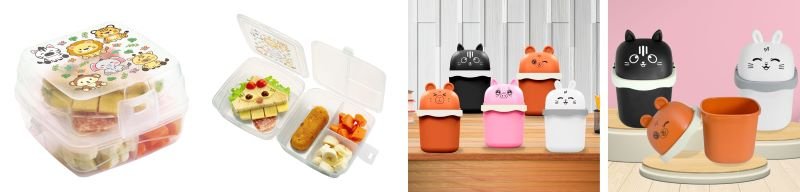 Na hora de lanchar ou nos momentos de organizar a bagunça, a Keita está presente com opções descontraídas. A marca possui a lancheira dupla Safari, com bastante espaço para levar muitas guloseimas. Além disso, oferece as lixeiras de bichinhos (gato, urso, capivara, porquinho e coelho) com capacidade de 1,5L. Mais informações: www.keita.com.br