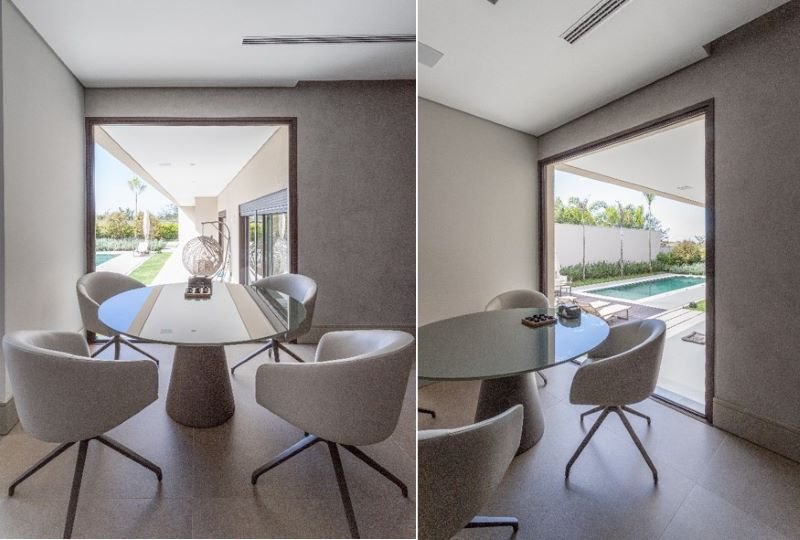 A arquiteta ressalta que o viés minimalista respeita as lacunas entre os mobiliários e objetos, salientando a forma de cada um deles.