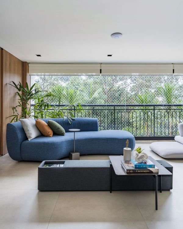 Ele não passa despercebido, realça o décor do ambiente, adere a proposta de transmitir leveza, por se tratar de uma cor fria, e as boas sensações de serenidade e paz. Para a profissional, também é uma boa alternativa para colorir o sofá em uma proposição mais delicada – mas não menos expressiva.